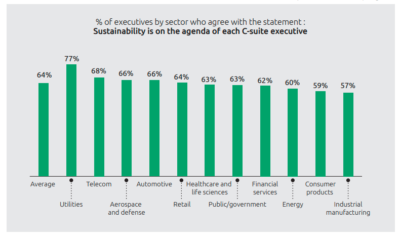 Attualmente, i principali fattori che favoriscono le iniziative di sostenibilità sono la pressione esercitata da dipendenti attuali e potenziali (per il 60% dei dirigenti) e la necessità di anticipare la maggiore rigidità delle prossime normative (57%), mentre il 52% dei dirigenti afferma di prevedere un aumento dei ricavi in futuro. La maggior parte delle aziende non ha ancora intrapreso azioni perché teme le implicazioni economiche a breve termine: spesso la sostenibilità è infatti vista come un aspetto legato ai costi piuttosto che ai valori, in particolare nel panorama macroeconomico globale. Soltanto un intervistato su cinque (21%) ritiene che il business case per la sostenibilità sia ben chiaro, mentre il 53% afferma che i costi per intraprendere tali iniziative siano superiori ai potenziali benefici. Al contrario, il report ha rilevato che le organizzazioni che danno priorità alla sostenibilità stanno già superando quelle che non lo fanno.